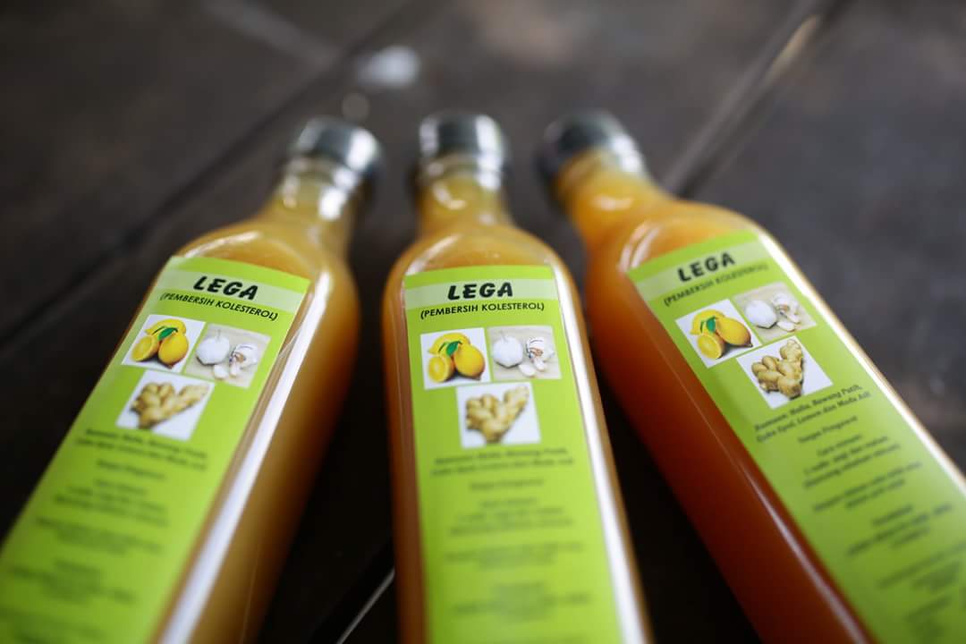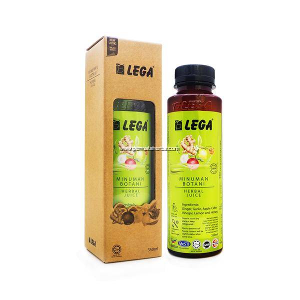 JUS KHASIAT LEGA yang menggabungkan herba-herba nusantara seperti Bawang Putih Lemon Halia Cuka Epal Madu Cekur Peria Durian Belanda dan Tunjuk Langit.